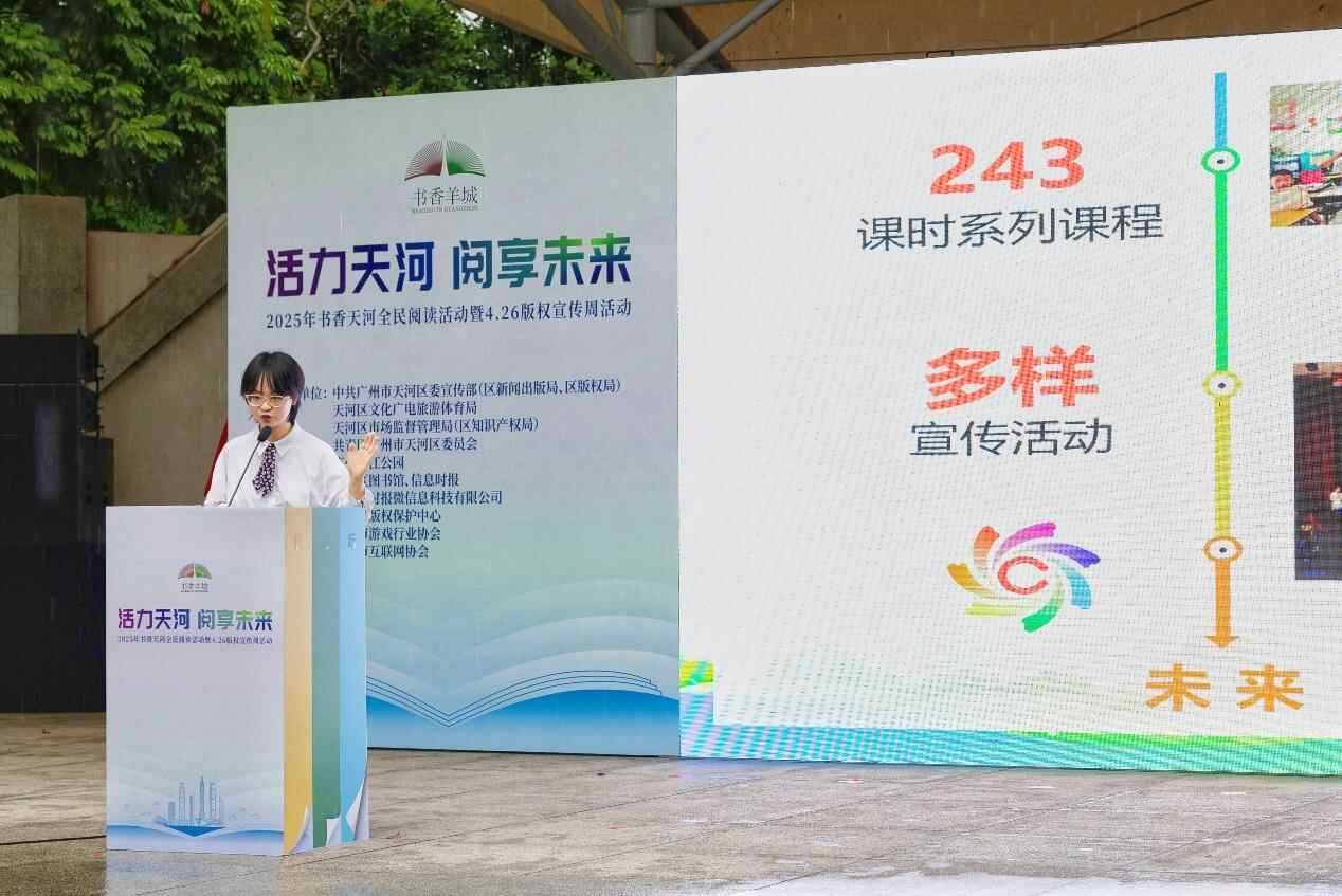 今年4月23日是第30个“世界读书日”,4月19日,“活力天河 阅享未来”2025年书香天河全民阅读活动暨4.26版权宣传周活动在广州珠江公园启动,点燃全民参与阅读的热情,为建设“书香天河”注入活力。