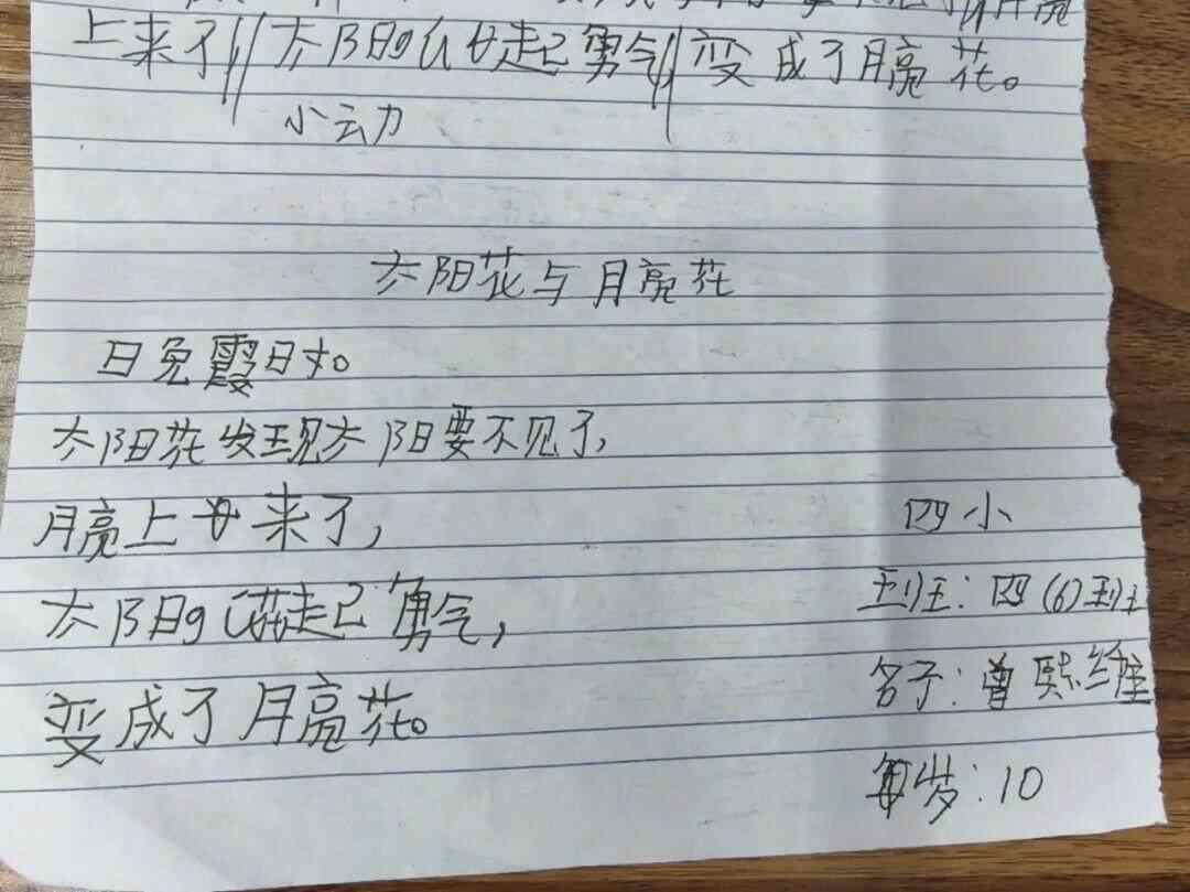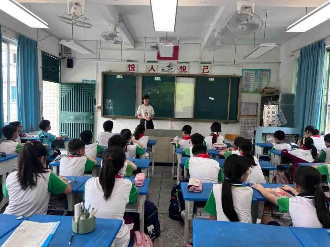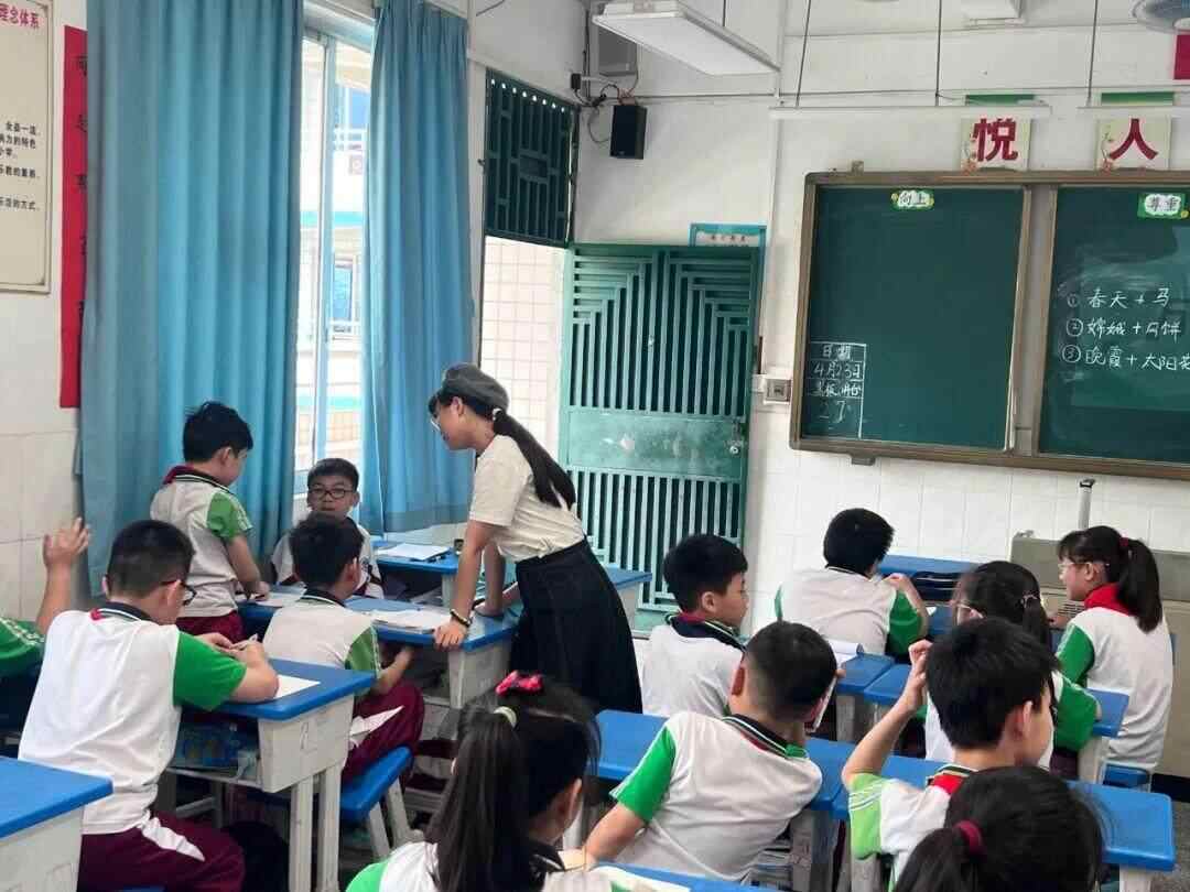 4月23日,羊城晚报艺术研究院诗歌教育负责人、中国诗歌学会会员小王老师来到佛冈给同学们上诗歌课。这次课,小王老师还是让同学们根据词语造句,例如“春天”和“马”,“嫦娥”和“月饼”,“晚霞”和“太阳花”,要求发挥自己的想象力。同学们对于造句小练习都很感兴趣,积极分享自己创作的内容。诗歌创作环节,小王老师让同学们完善自己造的句子,将其改善成一首小诗。不少同学都写得很有意思,很有想象力,很有童趣。