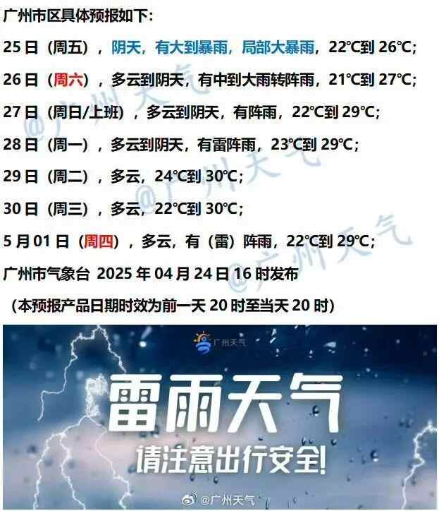 预计24日傍晚至25日白天仍有强降水,并伴有雷电、短时大风、局地小冰雹等强对流天气,影响24日晚高峰和25日早高峰出行,请密切留意最新预报预警信息,提前做好出行规划。