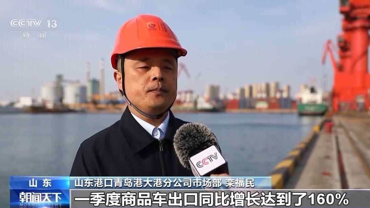 山东港口青岛港大港分公司市场部 栾福民:中国新能源汽车中南美洲的销量上涨迅速,我们新开通了中南美洲等地区航线,一季度商品车出口同比增长达160%。