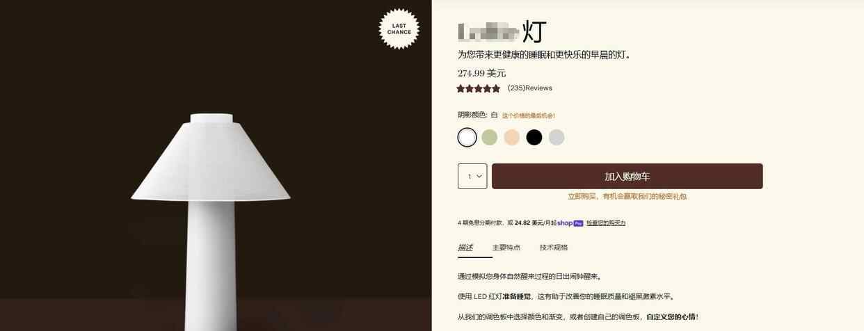 △马修·哈塞特所出售的台灯,其官方销售网站上的说明显示,这款台灯可以配合其专用的应用程序,改变台灯的灯光颜色与亮度,并模拟日出的光照效果。