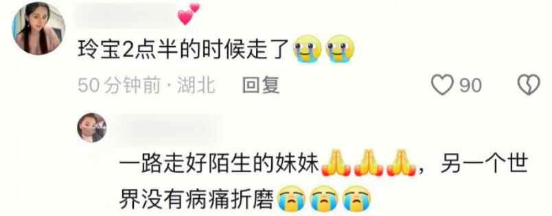 随后,其好友透露玲宝已经在下午2点半离开人世,视频是上午拍摄的。