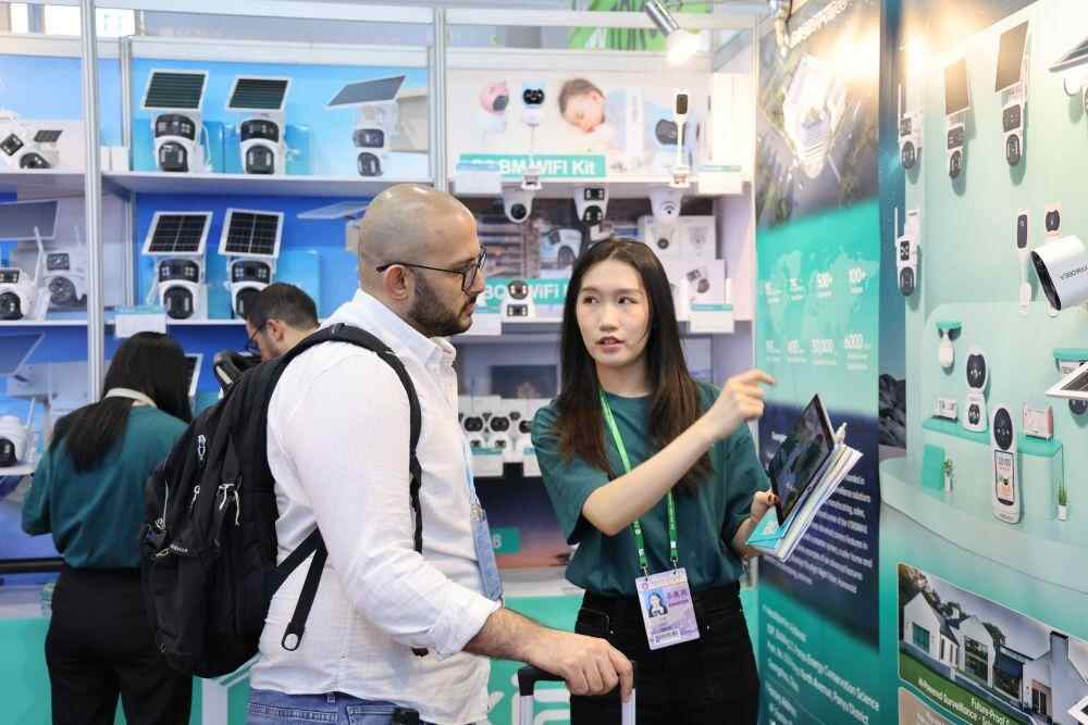 4月15日,客商在广交会上选购安防产品。新华社记者 卢汉欣 摄