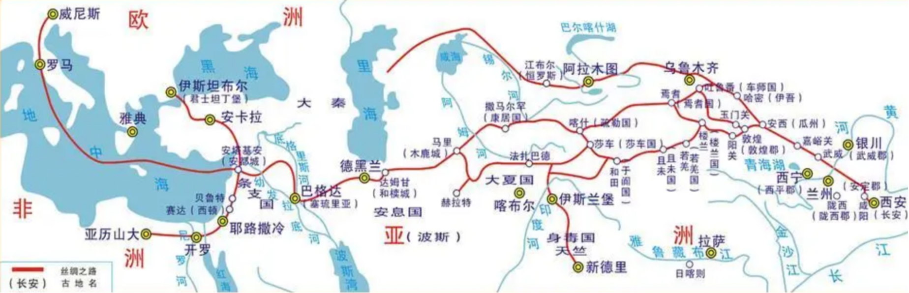 在穿越沙漠、雪山、海洋等恶劣自然环境时,古人展现出不畏艰险的协作精神;通过商业、文化、艺术、宗教等领域的深度交流,实现了不同文明的兼收并蓄与繁荣共生;衣着、饮食等日常习俗的交融,展现出人们自由奔放的生活热情;当年被各族人民所尊敬的“天可汗”的开放胸襟,和延续至今的“唐人街”之称,则印证了民族和睦共处的可能。