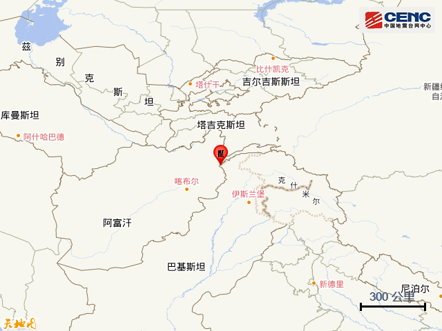 周边城市:震中200公里范围内有2座大中城市,最近为霍罗格(Khorog),距震中约161公里。