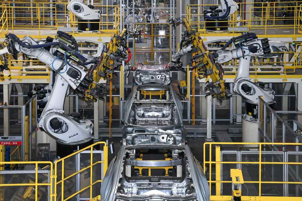 2月24日在广州番禺广汽智联新能源产业园拍摄的埃安智慧产线。新华社记者 刘大伟 摄