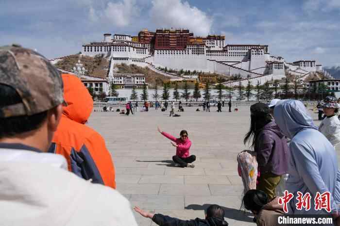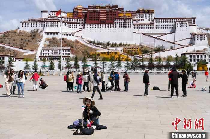 4月18日,游客在拉萨布达拉宫广场拍照留念。中新社记者 江飞波 摄
