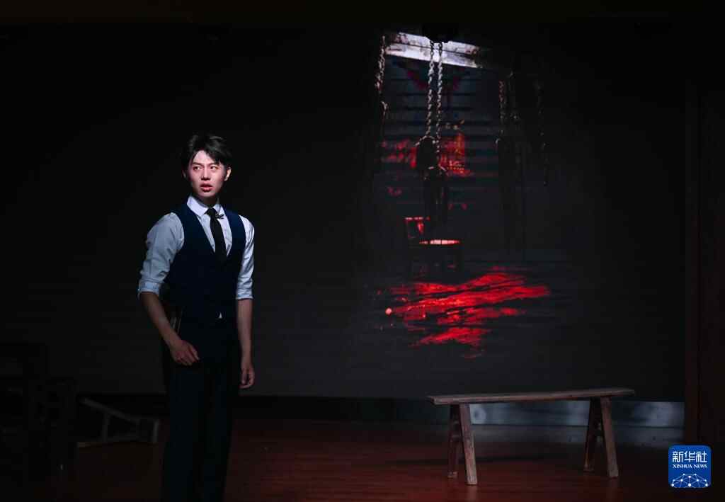 4月16日,在重庆市沙坪坝区文化馆,演员表演话剧《青山见》。