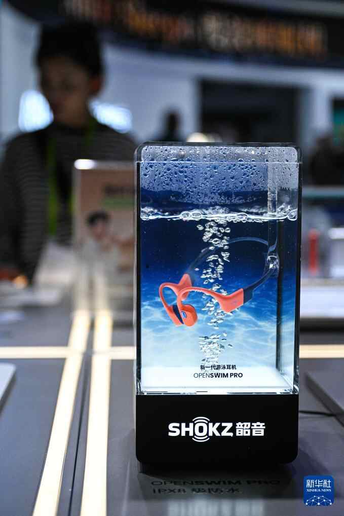 第五届消博会韶音展台上的新一代游泳耳机。新华社记者 蒲晓旭 摄