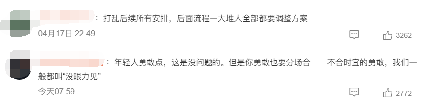 也有些网友认为他冲动莽撞,缺乏准备,还可能影响整个活动的后续安排。