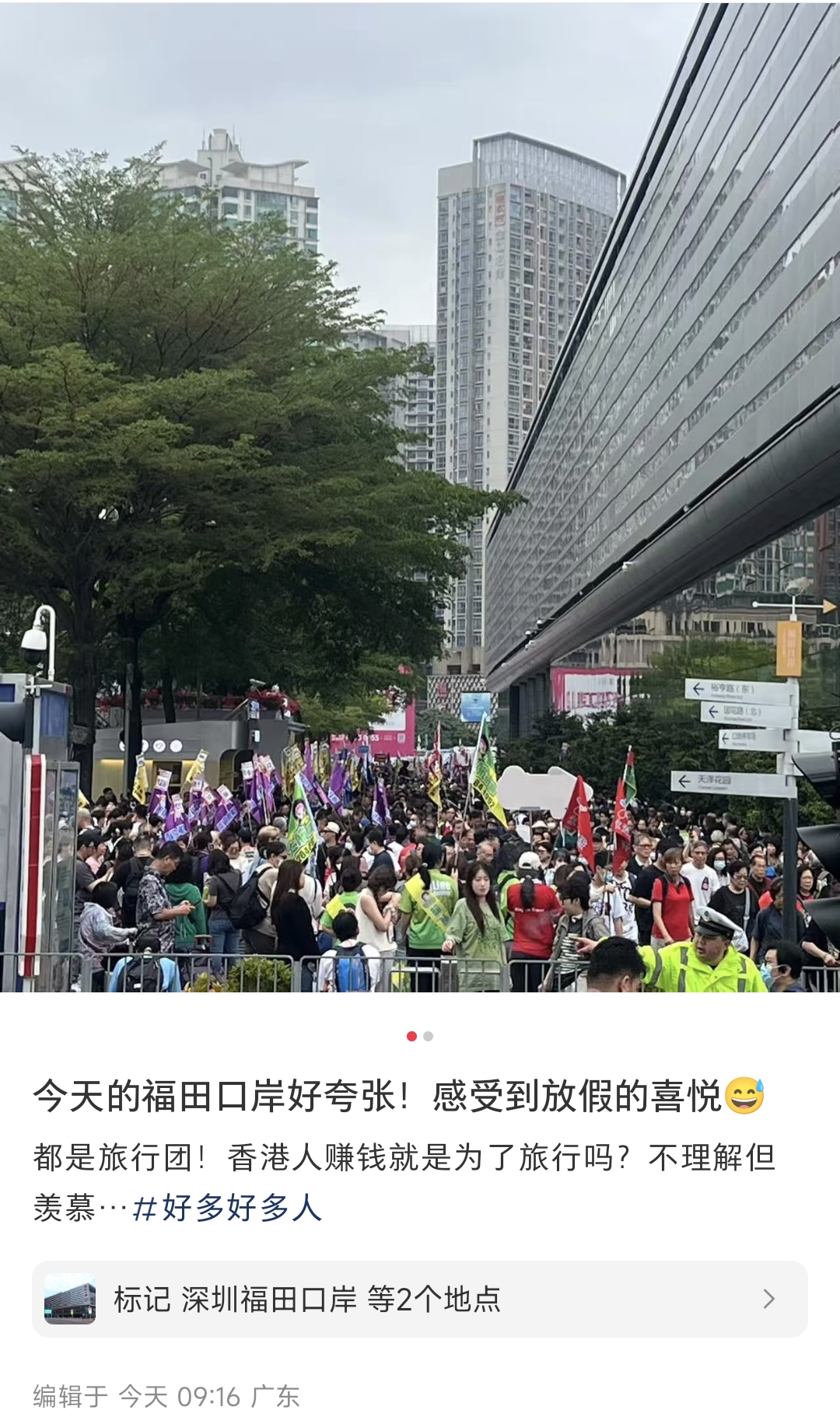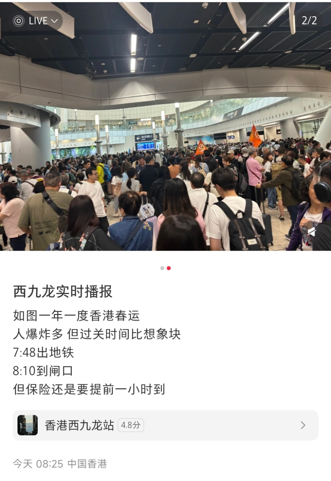 西九龙站和罗湖口岸也人头涌动,旅客摩肩接踵。不过有网友表示,过关时间比想象中要快。