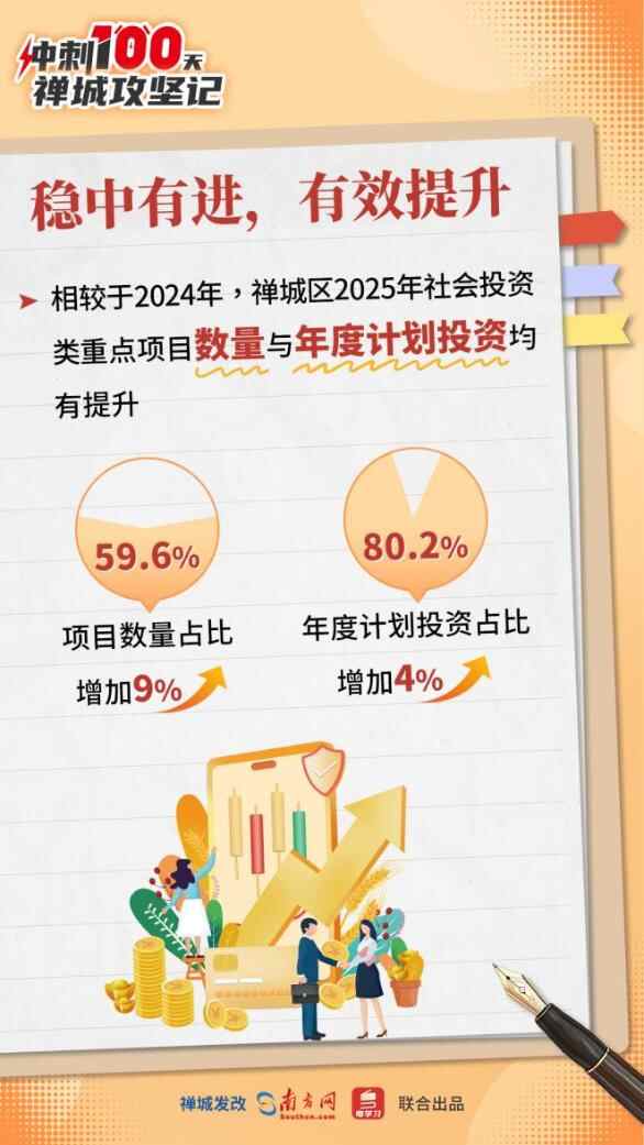 从纵向上看,有效投资对稳增长的关键作用持续发挥。相较于2024年,今年禅城区社会投资类重点项目数量与年度计划投资均有提升,项目数量占比59.6%,增加9%,年度计划投资占比80.2%,增加4%,在做优增量和盘活存量中全面提高资源配置效率。