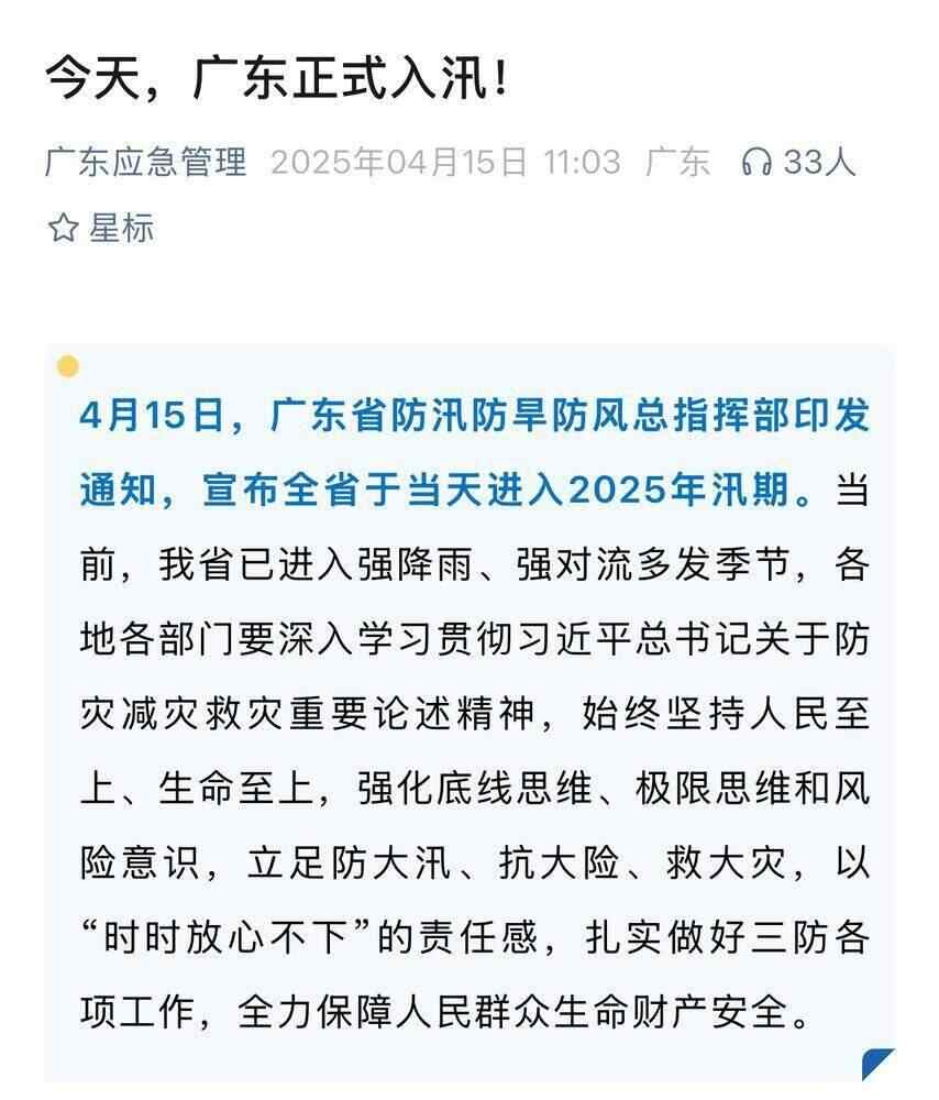 4月15日,广东省防汛防旱防风总指挥部印发通知,宣布全省于当天进入2025年汛期。恰好在4月15日至16日,广州、深圳、珠海等地的气象部门宣布,根据气象数据监测,广东多地已在4月8日进入夏季。在多个部门“官宣”中,广东“换季”了。