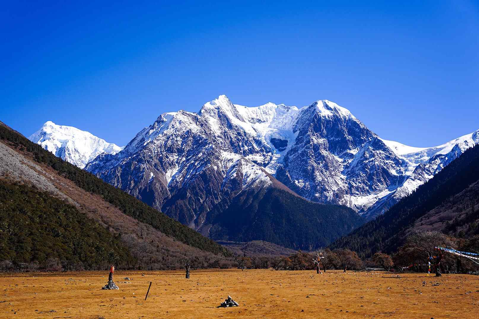 梅里雪山西坡甲应村的高山草甸在秋阳浸染下化作流金调色盘,金黄草色与斑斓落叶交织。卡瓦格博峰巍峨雪线在晨光中闪耀圣洁光辉,云雾游走于峰林间时隐时现,光影交错间恰似神灵以雪山为笔,将牧场作宣纸,勾勒出独属于藏地秋日的立体诗行。