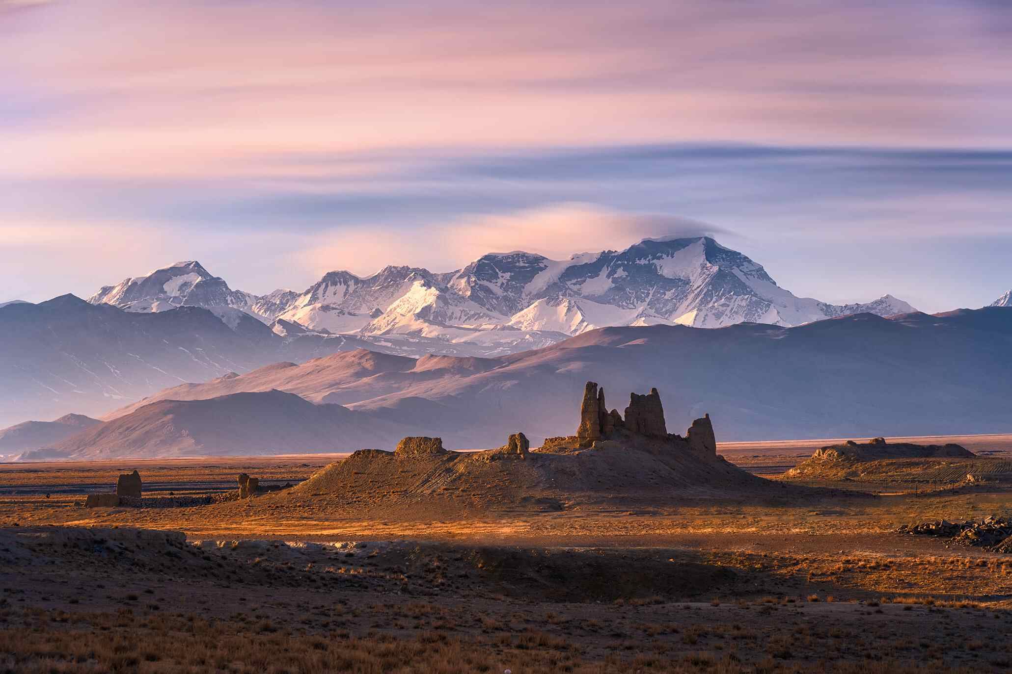 在雪域高原的巅峰,卓奥友峰高耸入云,宛如神圣的守护者。其下,古老的古堡遗迹静卧,在清晨的微光中散发着神秘的气息。长焦镜头巧妙地压缩空间,让雪山与堡显得无比接近。仿佛在千万年的岁月长河中,它们一直如此相互守望。