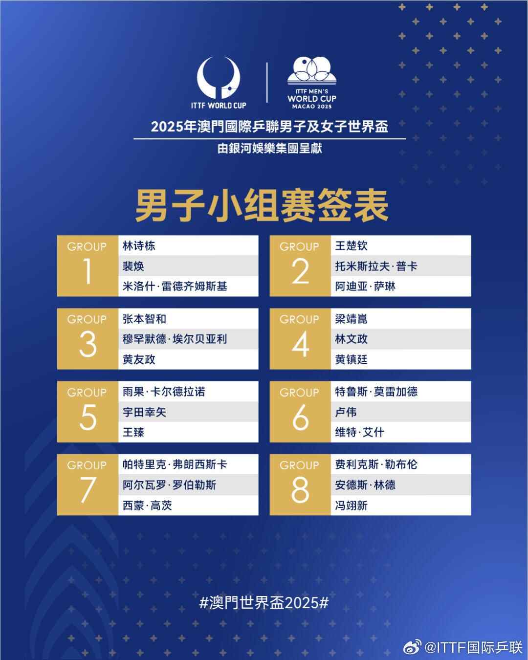今天,2025年澳门国际乒联男子及女子世界杯抽签结束。