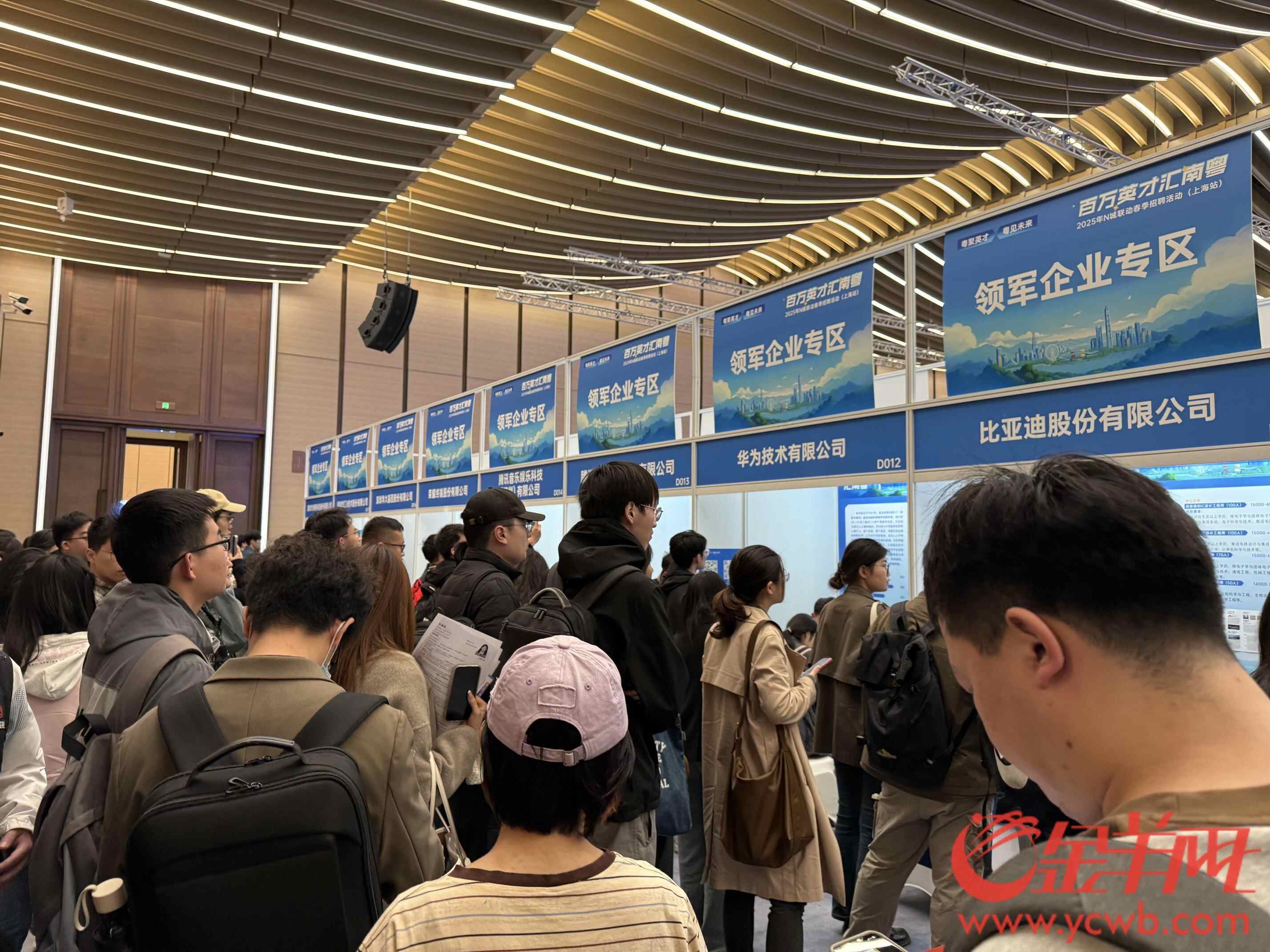 4月13日上午,“百万英才汇南粤”2025年N城联动春季招聘活动(上海站)正式启动。腾讯、华为、比亚迪等众多名企齐聚一堂,提供100万年薪的岗位超800个。
