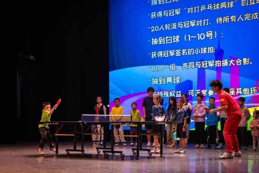 在签名合影环节,百余名幸运观众与偶像近距离接触,感受冠军风采。此外,活动还通过视频回顾了两位运动员在赛场上的高光时刻,让孩子们直观体会“永不言弃”的体育精神。