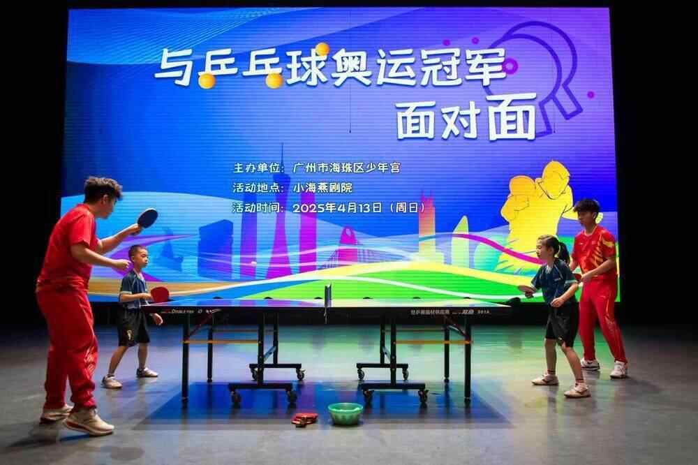 4月10日至14日,由广州市海珠区少年宫主办的“冠军风采,乒乓之光——乒乓球奥运冠军进校园”系列活动在海珠区内多所学校和海珠区少年宫举行。