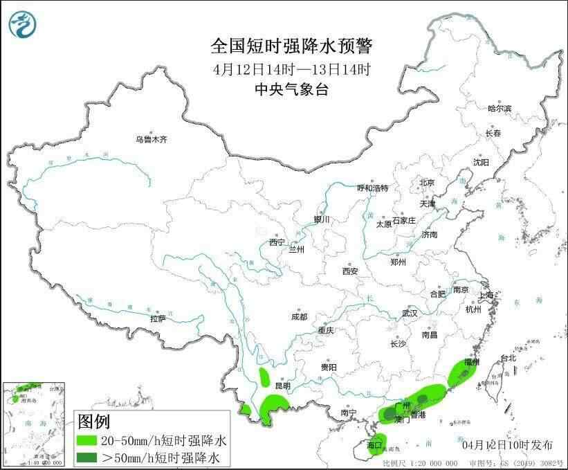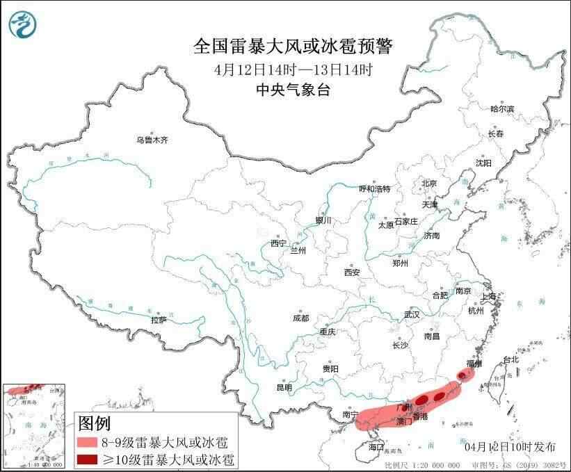 4月12日10时,中央气象台继续发布强对流天气蓝色预警信号。根据预警报文,预计4月12日14时至13日14时,华南南部等地的部分地区将有8级以上雷暴大风或冰雹天气,其中,福建东南部、广东中南部等地的部分地区将有10级以上雷暴大风,最大风力可达11级以上;华南南部、西南地区南部等地的部分地区将有小时雨量大于20毫米的短时强降水天气,其中,福建东南部、广东南部等地的部分地区小时雨量大于50毫米,最大可达60毫米以上,预计强对流的主要影响时段为12日午后。