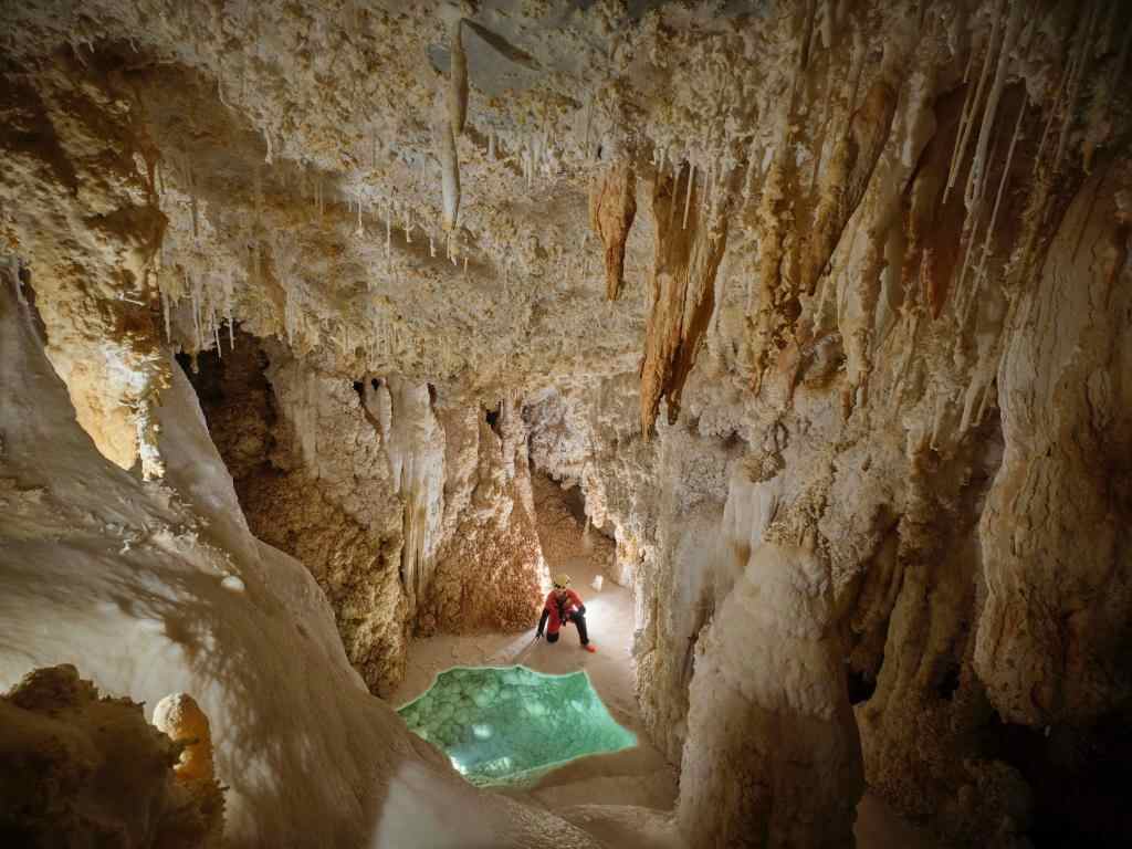 探险队员在洞内发现的钟乳石景观。新华社发(赵揭宇 摄)中国地质学会洞穴专业委员会副主任委员、世界地质公园评审专家张远海表示