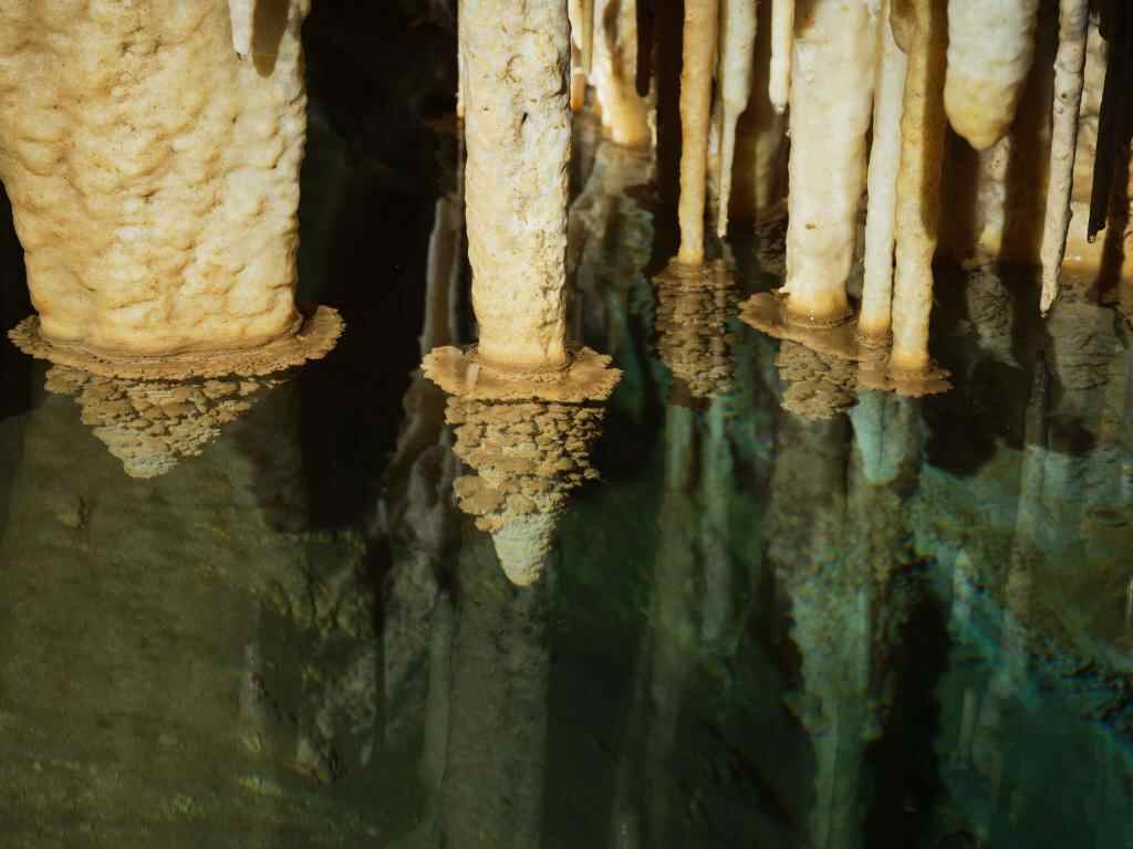 上千根纯白石钟乳如冰晶森林般亭亭玉立于其中,