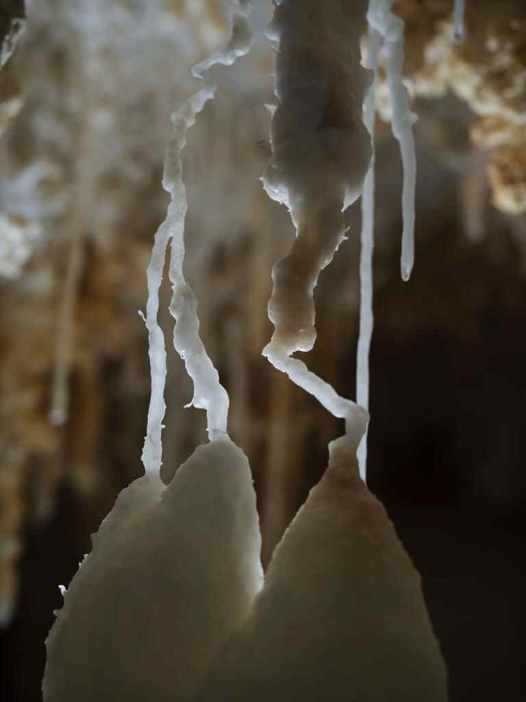 探险队员在洞内发现的“鹅管”景观。新华社发(赵揭宇 摄)
