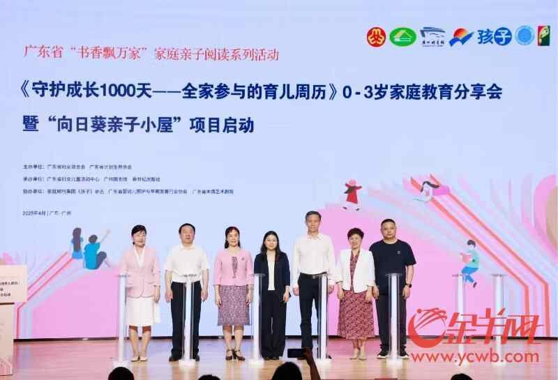 第30个世界读书日即将到来之际,4月12日,广东省“书香飘万家”家庭亲子阅读系列活动在广州图书馆拉开序幕。此次活动以举办《守护成长1000天——全家参与的育儿周历》0-3岁家庭教育分享会暨“向日葵亲子小屋”项目启动为牵引,推动全民阅读,营造良好的文明风尚。省妇联家儿部部长朱佳、省计生协秘书长彭忠荣、省妇儿中心主任安玉红、广州图书馆馆长吴翠红、新世纪出版社副总编辑秦文剑等出席仪式,婴幼儿照护机构代表、亲子家庭代表等共计100人参与活动,活动全程线上直播,直播观看近3000人次。