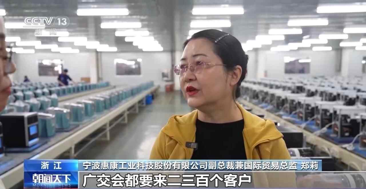 宁波惠康工业科技股份有限公司副总裁兼国际贸易总监 郑莉:海外客户都希望到广交会来看新产品。我们每年实际上广交会都要来两三百个客户,今年像这种新产品预约的都有三四十个。