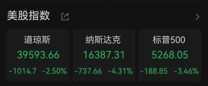 10日,美股三大股指纷纷收跌,大幅逆转前一日录得的涨势。标普500指数收跌3.46%,盘中一度下跌6.3%,为2020年3月以来最大盘中跌幅,4月以来已累计下跌6.1%。道指收跌2.5%,纳指收跌4.31%。