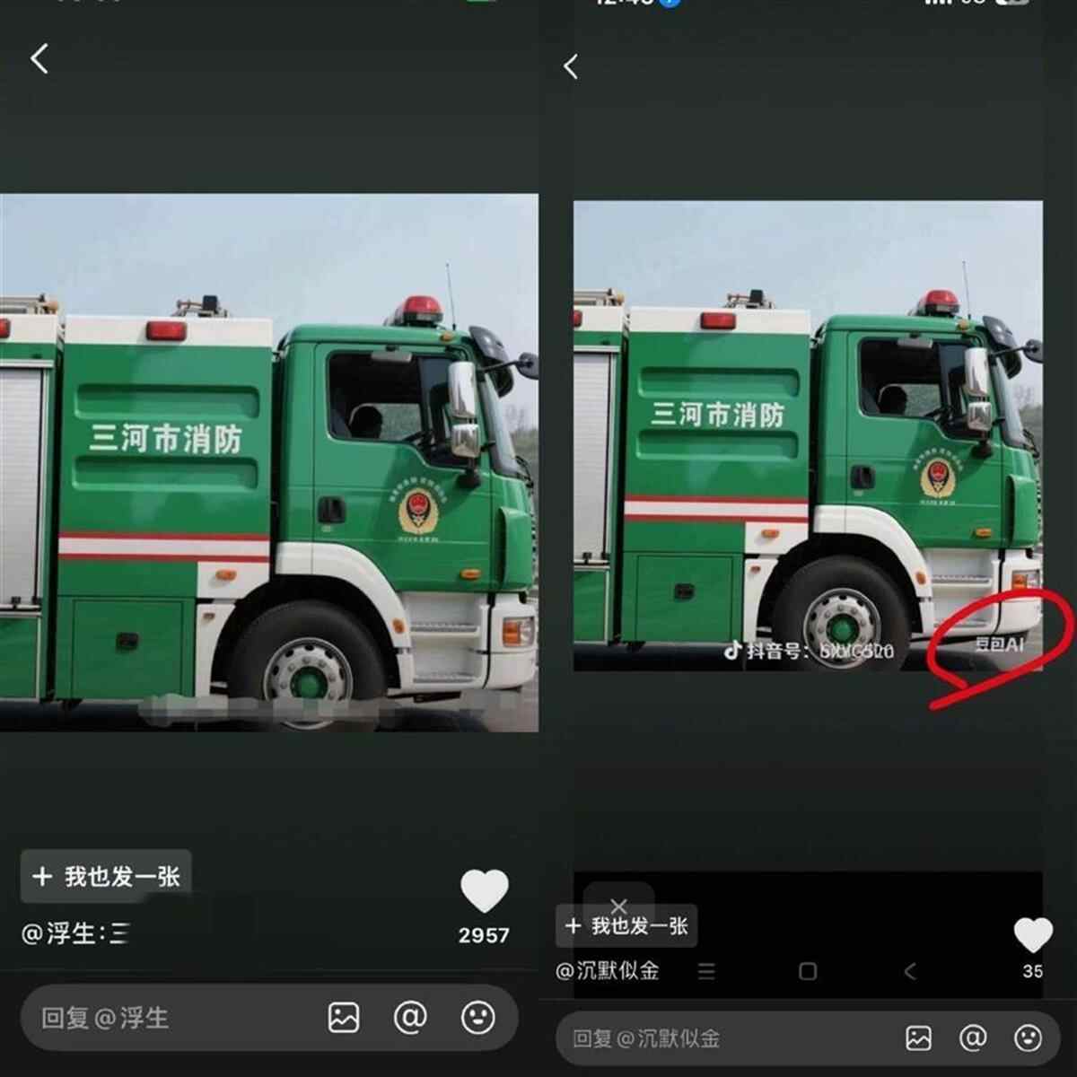 近日,有网友发布图片称三河市消防大队的消防车被涂装成绿色。随后有网友曝光或为AI图片。