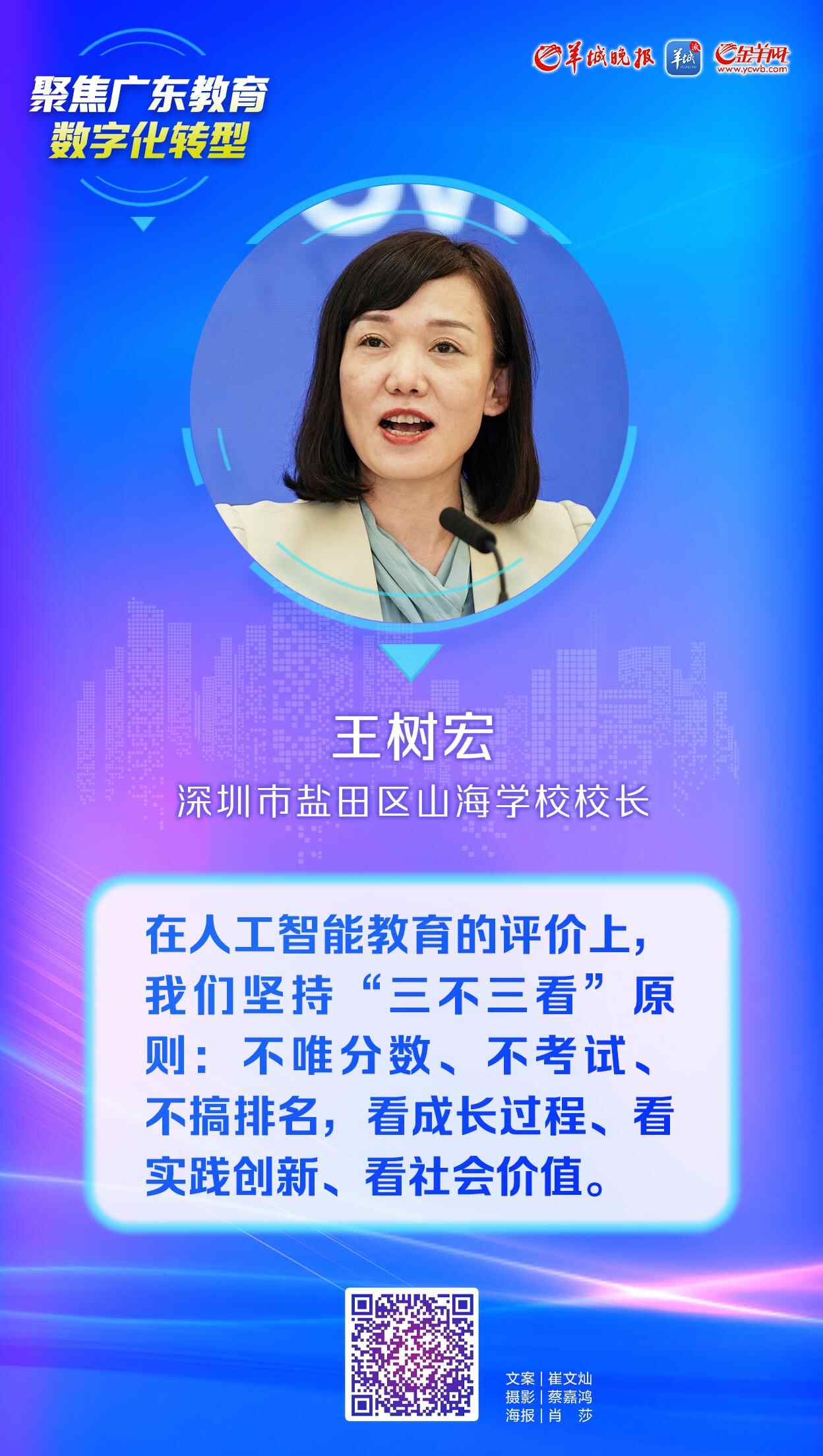 现场,羊城晚报记者向学校代表、深圳市盐田区山海学校校长王树宏提问:“您的学校正在开展人工智能通识教育,请问人工智能教育的课时等是怎么安排的?怎样能够确保教师达到要求?”