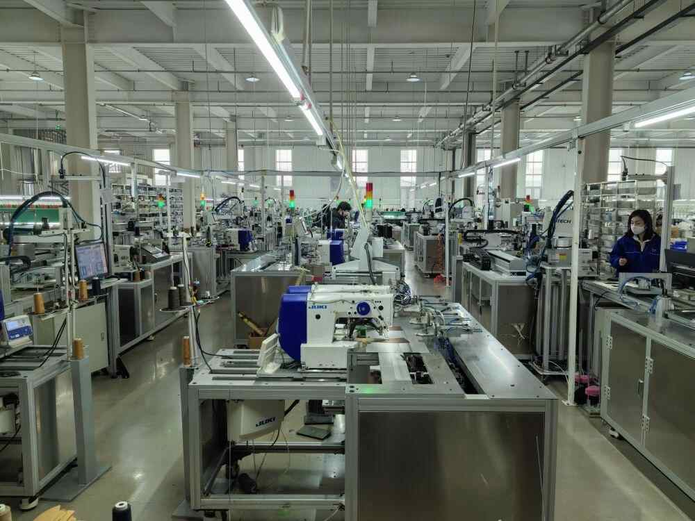 青岛前丰国际帽艺股份有限公司的智能制帽自动化生产线。新华社记者 王欢 摄