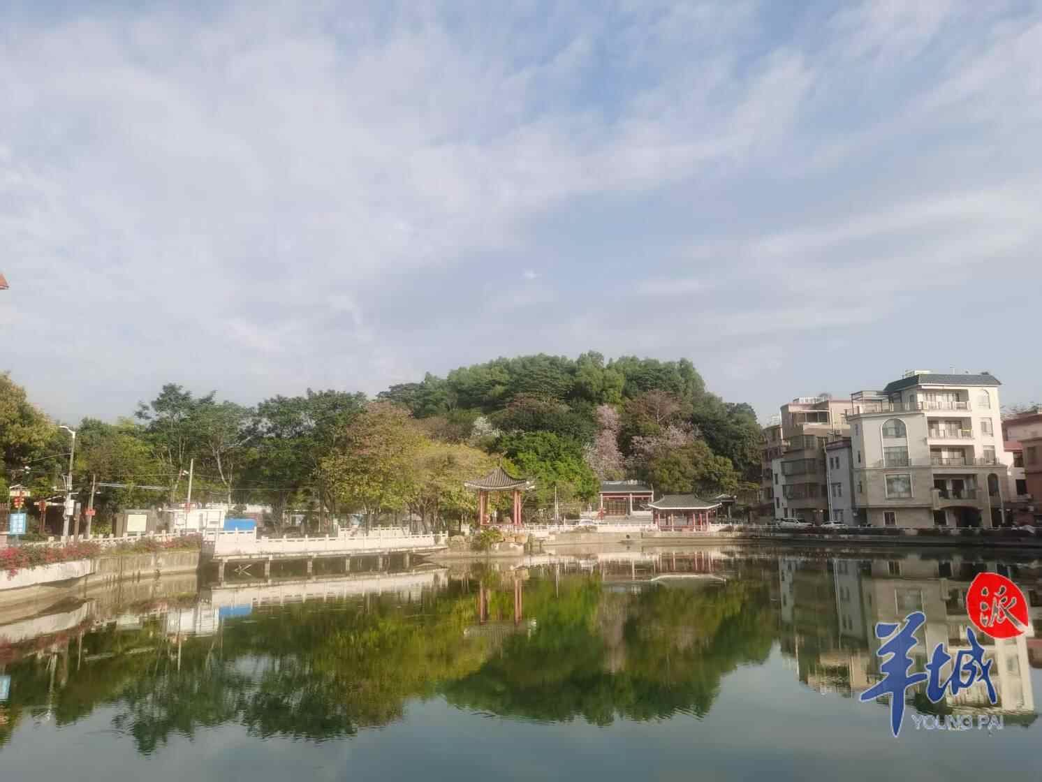 从深井码头入村,行两三百米即可见到一大片荷塘,青山白桥与亭台楼阁倒映其中,令人不禁心醉。由此入山拾级而上,十分钟便可登临山顶。独立二层亭子上,东可俯视珠江,不时能见到轮渡蜿蜒来去;西可远望大学城,天气好时还能看到广州塔。古朴村落与摩天大楼,在这里只有一江之隔。