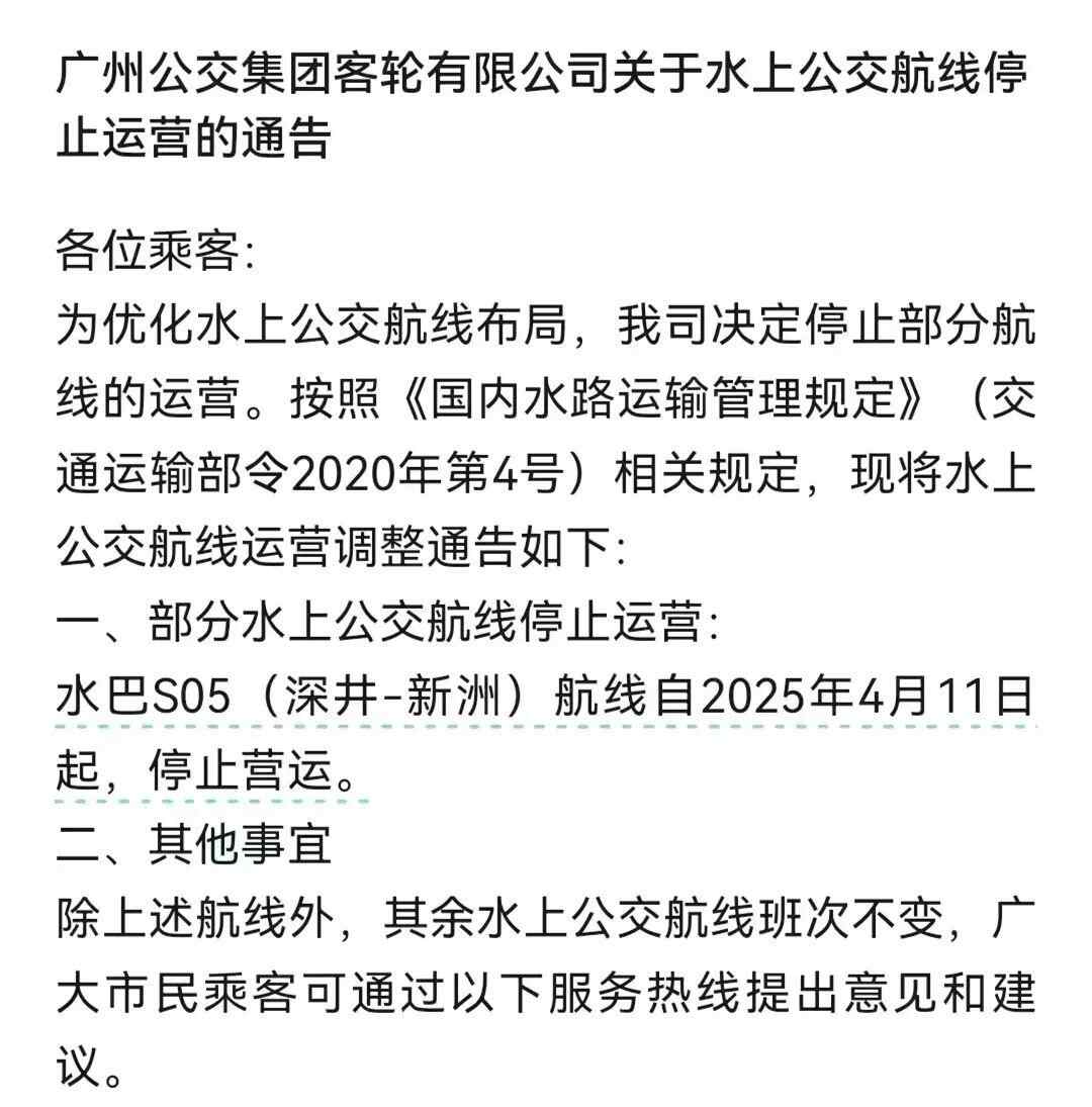 许多当地居民认为,地铁深井站的开通是导致该航线乘客锐减的原因,而这则进一步影响了客轮公司的正常运营,终致该航线即将停运。此前亦有媒体报道,2023年深井-新洲航线全年客运量超80万人次,地铁七号线开通后的2024年,该航线全年客运量降为60余万人次,亏损约300万元。