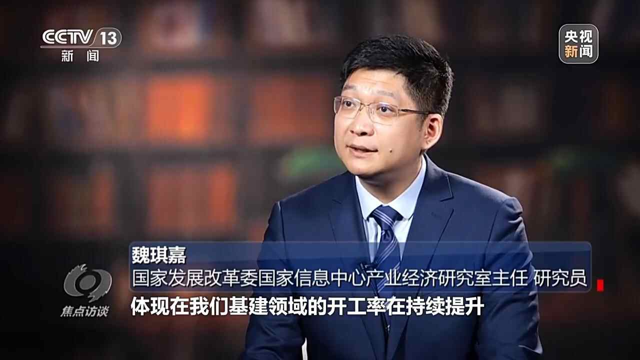 国家发展改革委国家信息中心产业经济研究室主任、研究员 魏琪嘉:从微观领域看,比如挖掘机指数的变化,体现在基建领域的开工率在持续提升。像一些新开办、新注册企业的数量变化情况,也看到我们经营主体的经营意愿和活跃程度在进一步提升。同时,消费领域像首发经济相关的指数以及线上、线下消费的活跃程度来看,都体现出向上、向好的明显发展态势。