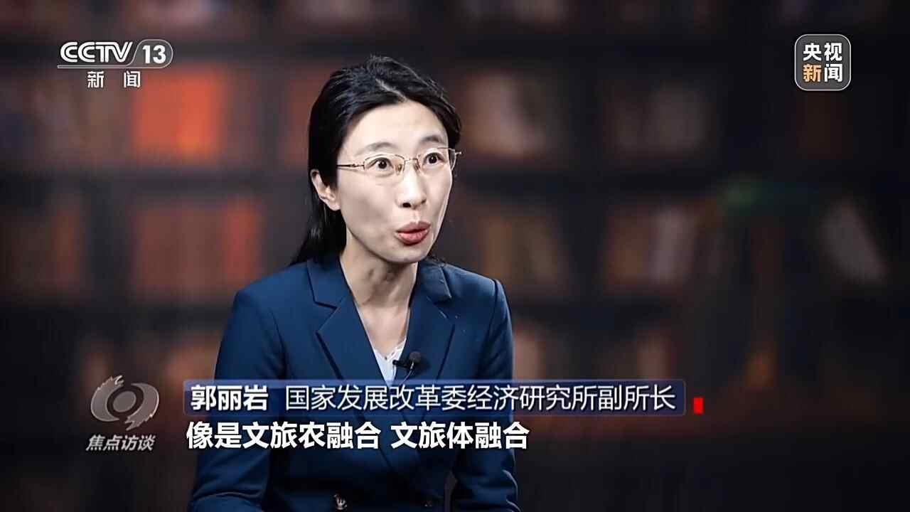 国家发展改革委经济研究所副所长 郭丽岩:我们各地调研也发现,像是文旅农融合、文旅体融合都有很多经典案例,带活了人流,带动了当地乡村振兴、特色产业发展。很多案例还借助数智化技术来赋能文旅农产业链条。一方面更好满足了居民家庭对于新奇特这类新场景的消费偏好,另一方面也带动了当地上下游相关产业的深度融合。