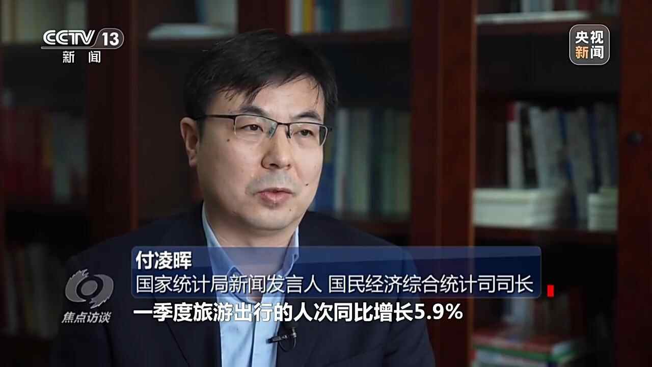 国家统计局新闻发言人、国民经济综合统计司司长 付凌晖:根据文旅部的数据来看,一季度旅游出行的人次同比增长5.9%,旅游人员的花费增长7%。根据税务总局有关的一些情况来看,休闲、观光、公园、游览等消费增长比较好,尤其在今年一季度,电影票房收入增长超过40%。这些都显示出中国居民在消费当中对服务消费的升级态势仍在持续。未来,服务消费的发展对于整个居民消费的增长支撑作用会来越来越明显。
