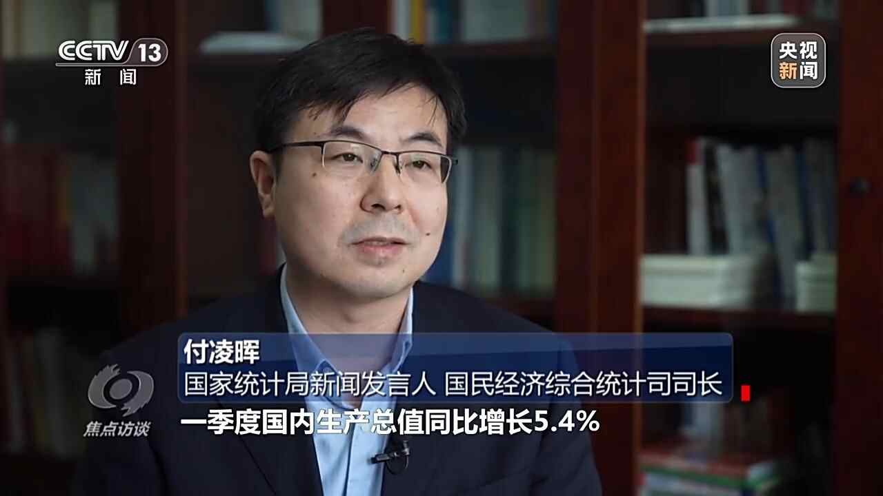 国家统计局新闻发言人、国民经济综合统计司司长 付凌晖:一季度国内生产总值同比增长5.4%,这个速度从去年以来季度增速上来看,属于比较高的增速,在世界主要经济体当中保持在前列的水平。充分体现了中国经济的强大韧性,以及我们发展的潜力,为实现全年的预期发展目标奠定了较好的基础。
