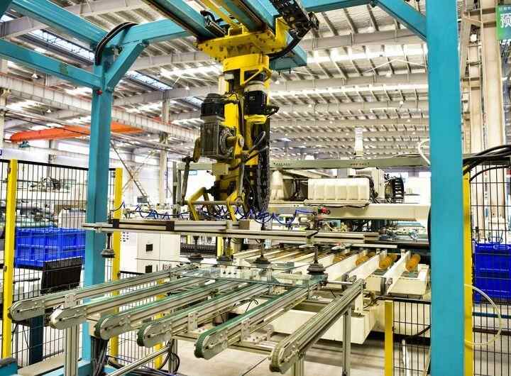 这是4月14日在安徽合肥长丰县拍摄的一新能源汽车配套企业的玻璃生产线。新华社发(孔根龙 摄)