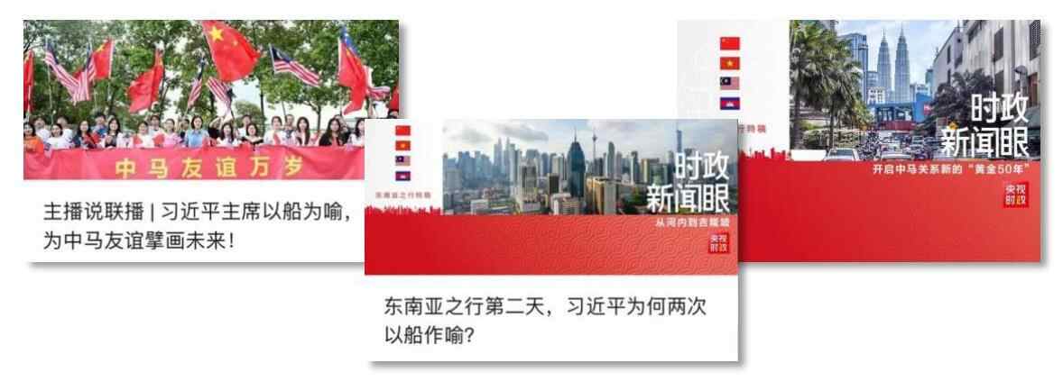 全网刷屏。央视新闻新媒体全网首发《习近平在马来西亚媒体发表署名文章》等21条时政快讯、独家视频。《习近平会见马来西亚最高元首:一道开启中马关系新的“黄金50年”》等49篇时政稿件获全网置顶推荐。央视新闻发起的#中马两国传统友谊绵延千年#等微博话题热搜置顶。