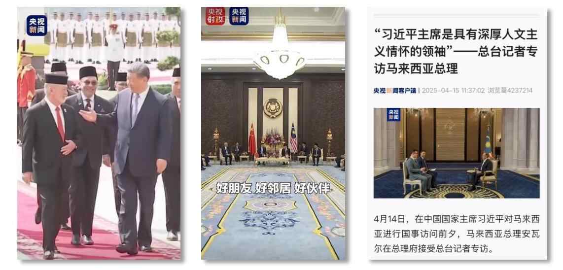 中央广播电视总台全媒体、多语种集群联动,推出时效领先、内容丰富、形态多样的系列报道,广泛传播中国声音,有力宣介中国主张。截至北京时间4月17日8时,总台播发的“习近平主席访问马来西亚”相关报道全球跨媒体总阅读浏览量达20亿次。