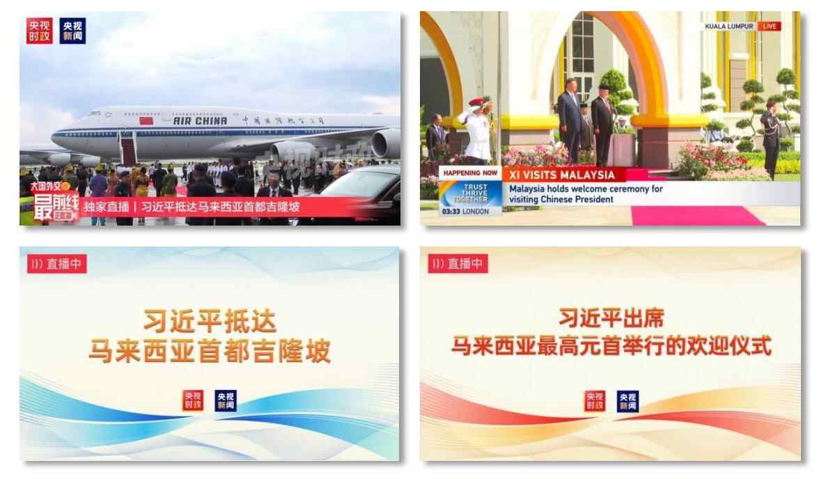 矩阵播发。央视新闻新媒体发起2场独家直播,CGTN推出3场直播特别节目,向全球同步呈现习主席抵达吉隆坡、出席欢迎仪式等重要活动。新闻频道、中文国际频道、中国之声、环球资讯广播、大湾区之声等播发《习近平会见马来西亚最高元首易卜拉欣》《习近平同马来西亚总理安瓦尔举行会谈》等报道,持续跟进最新动态,第一时间传递元首外交重要共识、重要成果。