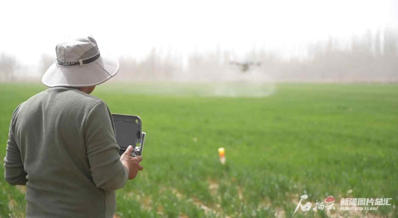 连日来,麦盖提县依托植保无人机“飞防”技术开展高效春管作业,通过精准施药、高效管护,为夏粮稳产增收奠定坚实基础。麦盖提县融媒体中心供图
