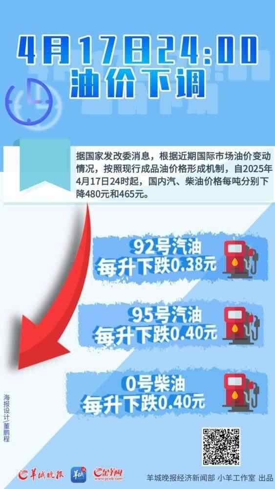 4月17日下午,国家发改委官网发布消息称,根据近期国际市场油价变化情况,按照现行成品油价格形成机制,4月17日24时,国内汽、柴油价格(标准品,下同)每吨分别下调480元和465元。折升价92#汽油、95#汽油、0#柴油分别下调0.38元、0.40元、0.40元。记者了解到,本轮成品油零售限价创近三年最大跌幅,消费者用油成本显著降低。