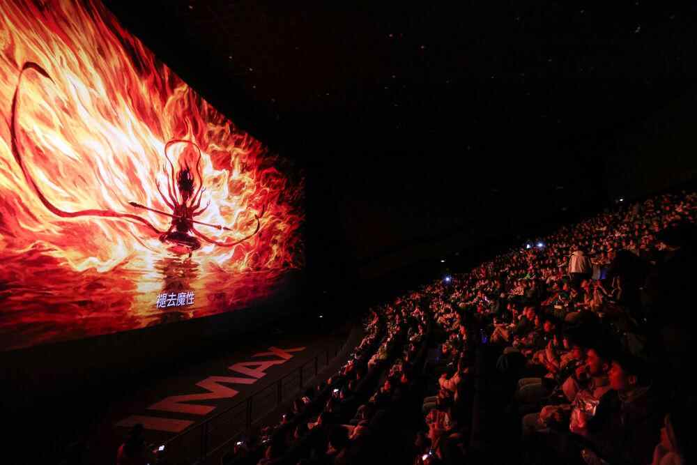 2月25日,观众在贵阳越界影城IMAX影厅内观看电影《哪吒2》。新华社记者 欧东衢 摄