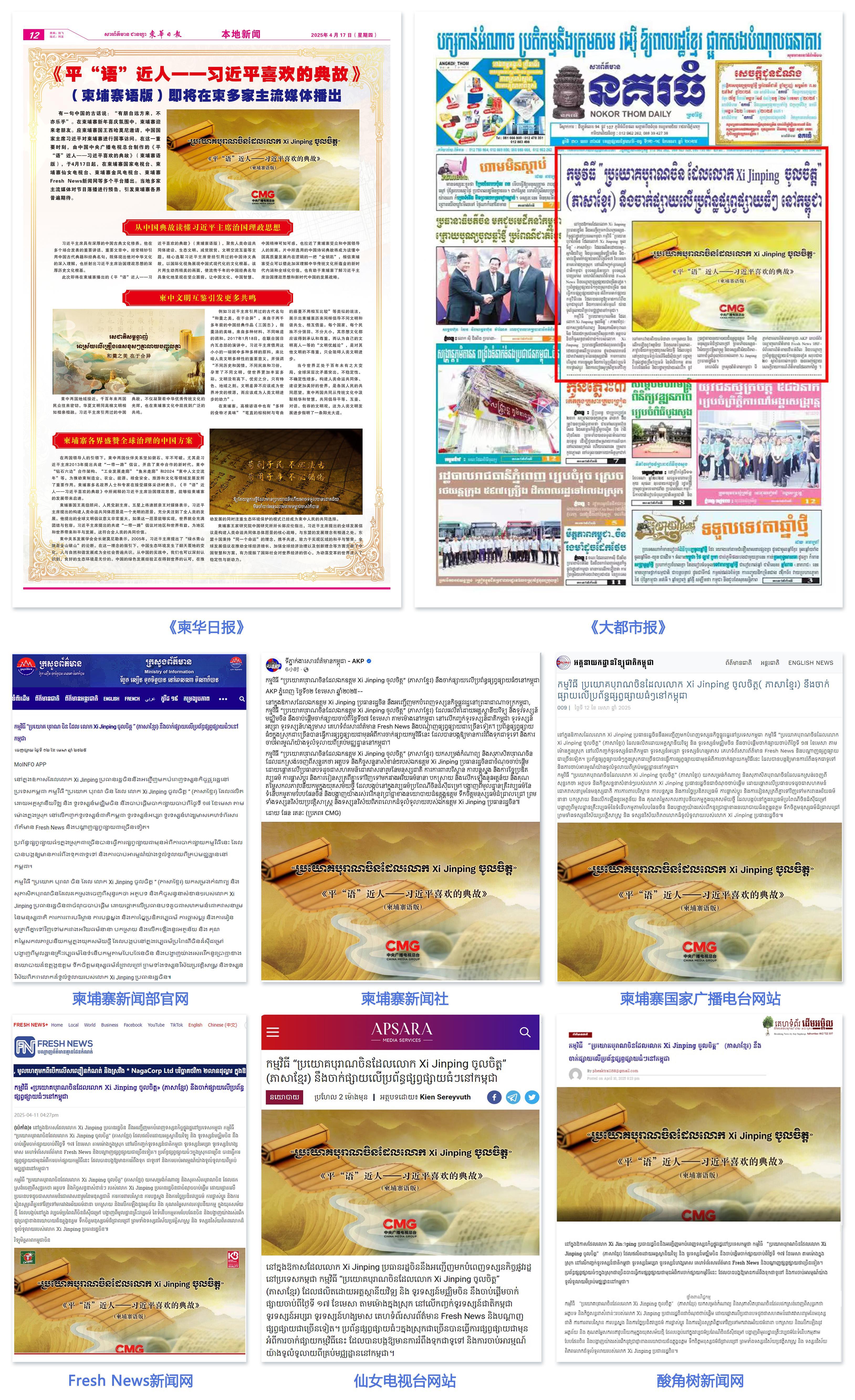 《平“语”近人——习近平喜欢的典故》(柬埔寨语版)即日起在柬埔寨国家电视台、Fresh News新闻网、仙女电视台、金凤电视台等柬埔寨多家主流媒体落地播出。《柬华日报》《大都市报》等当地报纸刊发节目播出预告消息。柬埔寨新闻部官网、柬埔寨新闻社、柬埔寨国家广播电台网站、Fresh News新闻网、仙女电视台网站、柬中记协网站、酸角树新闻网、柬埔寨国家传媒网、新柬埔寨网、新金边网、《金边日报》网等20余家柬主流媒体发布相关报道。