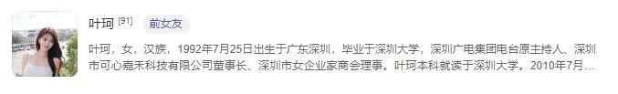 叶珂,出生于深圳,毕业于深圳大学,是深圳市可心嘉禾科技有限公司董事长、深圳市女企业家商会理事、深圳广电集团电台原主持人。