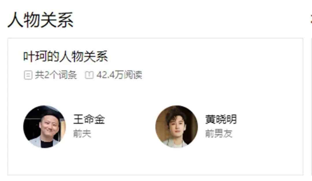 12月2日消息,黄晓明百科更新,在人物关系图中显示叶珂成前女友。同时,百度百科公布的叶珂的人物关系里,黄晓明也成了前男友。