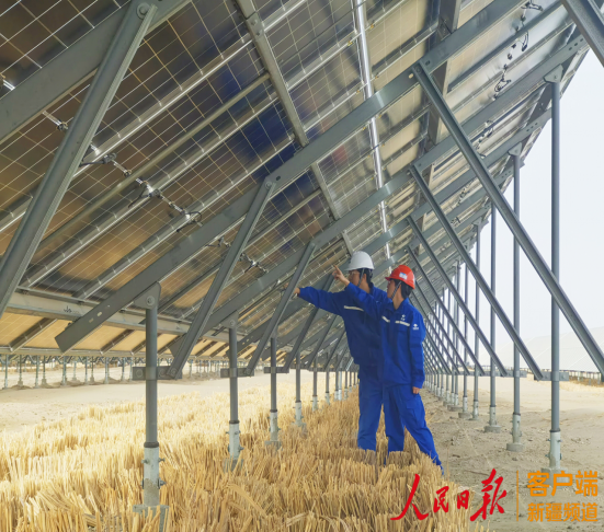 “光伏板的主要作用是降低风速,草方格则减少地表的沙流动,两者结合实现了防风固沙的效果。”中电建沙雅项目经理杜思伟表示,“项目投产后,年发电量可达4.2亿千瓦时,为沙雅县循环经济工业园区提供绿电支持,对推动地方能源结构优化升级具有重要意义。”